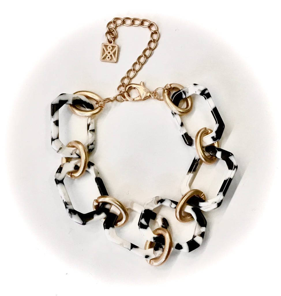Acrylic link chain bracelet, 5" length with 3" adjuster, lead and nickel-free, available in a variety of acrylic colors.